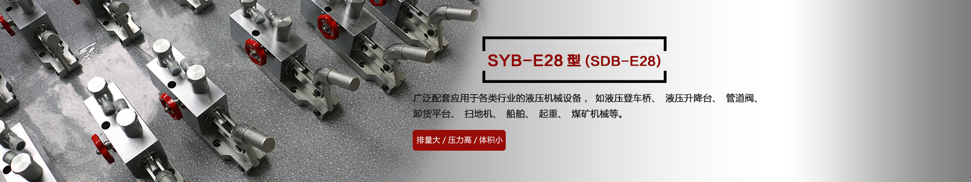 本產(chǎn)品SYB-E28型在本公司原有的SDB-E28型基礎(chǔ)上不斷改進(jìn)改良,廣泛應(yīng)用于各種行業(yè)的機(jī)械設(shè)備,如液壓登車橋、液壓升降臺(tái)、管道閥、卸貨平臺(tái)、掃地機(jī)、船舶、起重、煤礦機(jī)械等液壓機(jī)械設(shè)備上,效率高、結(jié)構(gòu)緊湊,深受客戶的歡迎...